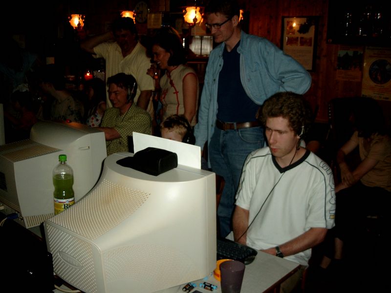 GOTCHA oder ISOTRON ;), Sven und im Hintergrund bekommt ein Gast eine Einweisung von Smutje an Vader's Rechner